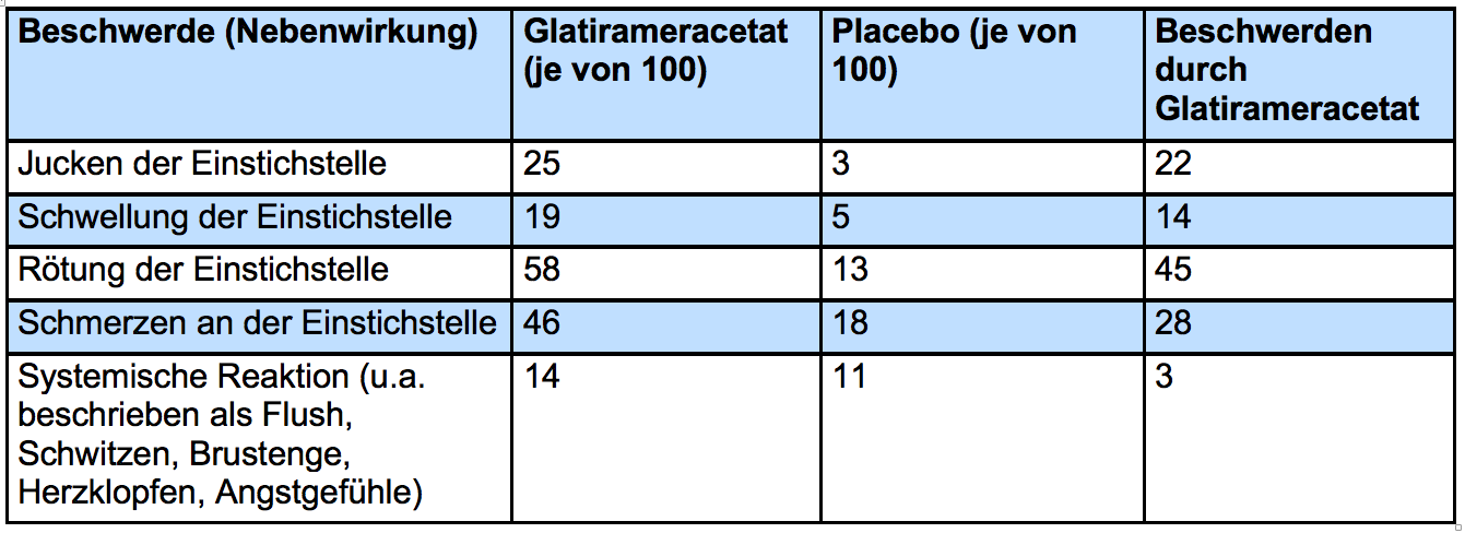 Durch Glatirameracetat bedingte schwere Nebenwirkungen und Todesfälle traten in den Studien nicht gehäuft auf.