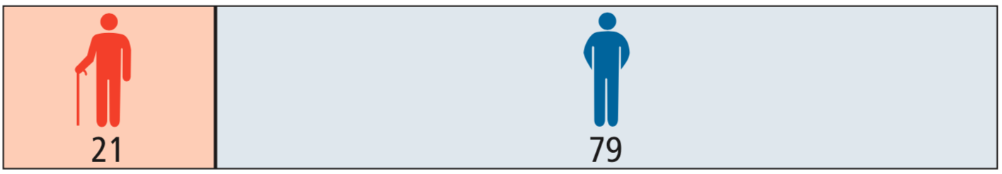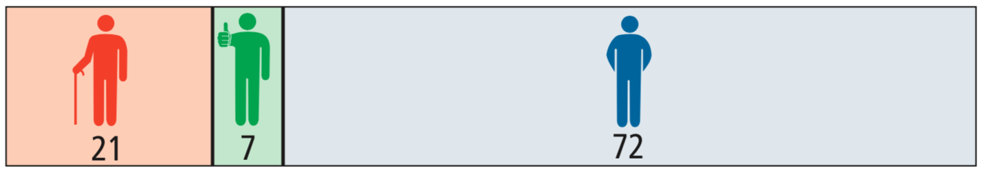 Für die obige Grafik heißt dies, dass auf 100 Patienten gerechnet: