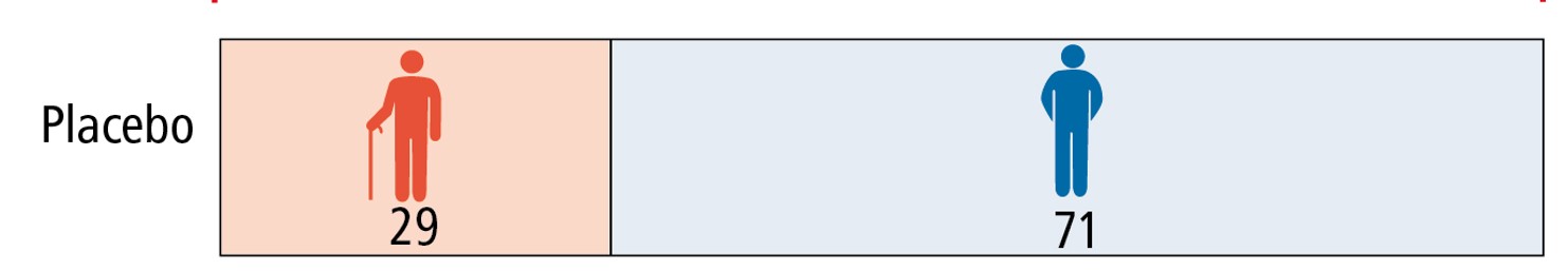 Von 100 Patienten, die mit einem Placebo behandelt wurden, zeigten 29 eine Behinderungszunahme und 71 blieben stabil.
