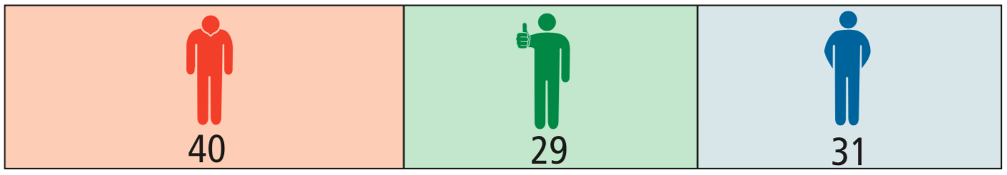 Männchen mit "hängendem" Kopf werden für das Auftreten von Schüben genutzt. Männchen mit Händen auf dem Rücken stehen für Stabilität und Männchen mit Daumen stehen für die Anzahl der Patienten, bei denen ein Medikament wirksam das Auftreten von Schüben verhindert. Die Werte erscheinen auf 100 Patienten bezogen. Dargestellt werden: