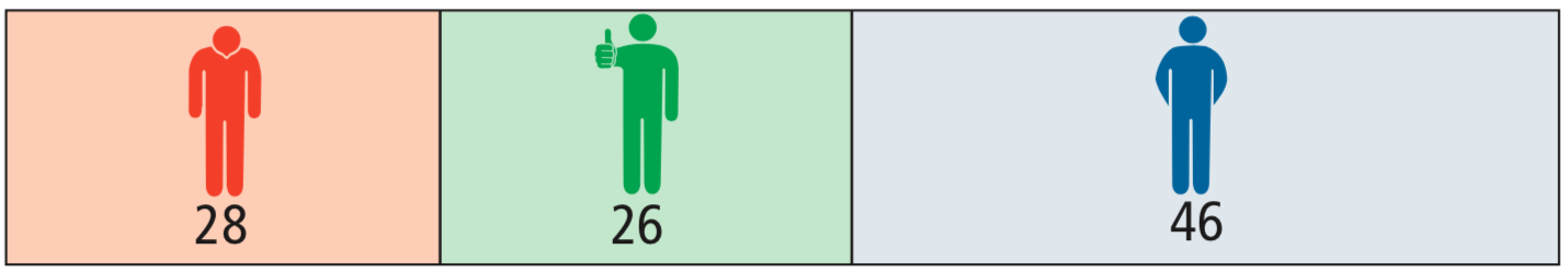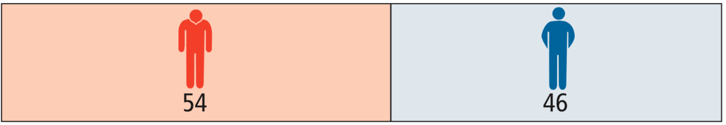 Man kann die Wirkung aber auch nur bezogen auf die Patienten mit Schüben darstellen. In der Placebo-Gruppe haben 54 Patienten einen Schub, in der Natalizumab-Gruppe sind es 28, also 26 weniger. 26 von 54 sind in Prozent umgerechnet 48%. Das entspricht dem relativen Nutzen (oder der relativen Risikoreduktion).