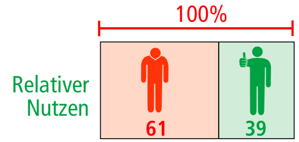 Wenn nun dargestellt werden soll, wie viele Patienten einen absoluten Nutzen durch die Therapie haben, muss berechnet werden, wie viele Patienten zusätzlich zur Behandlung mit Interferon-beta schubfrei bleiben. Oder anders gesagt, wie viele Patienten weniger einen Schub erleiden.