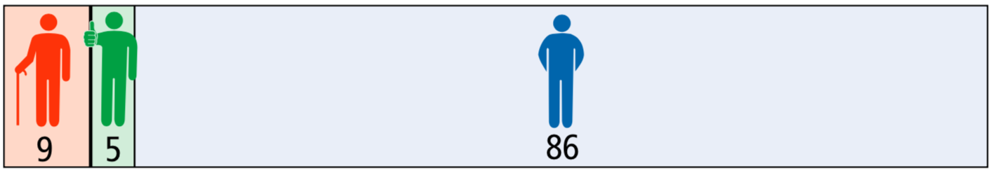 Für die obige Grafik heißt dies, dass auf 100 Patienten gerechnet:
