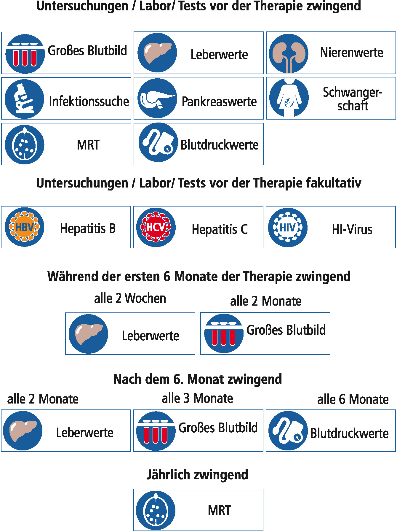 - Alemtuzumab, Ocrelizumab und Rituximab mindestens 6 – 12 Monate.