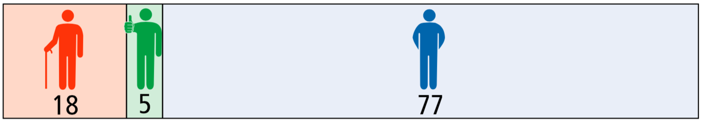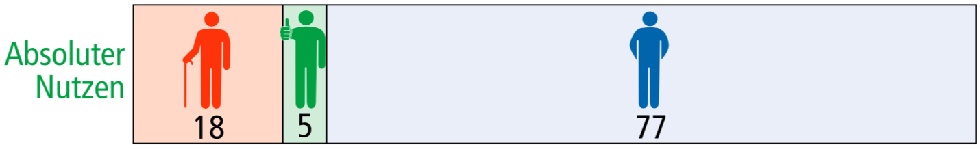 Für die obige Grafik heißt dies, dass auf 100 Patienten gerechnet: