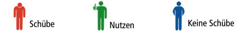 Männchen mit "hängendem" Kopf werden für das Auftreten von Schüben genutzt. So entstehen die Grafiken, die den Effekt auf Schübe darstellen. Ein Beispiel dazu: